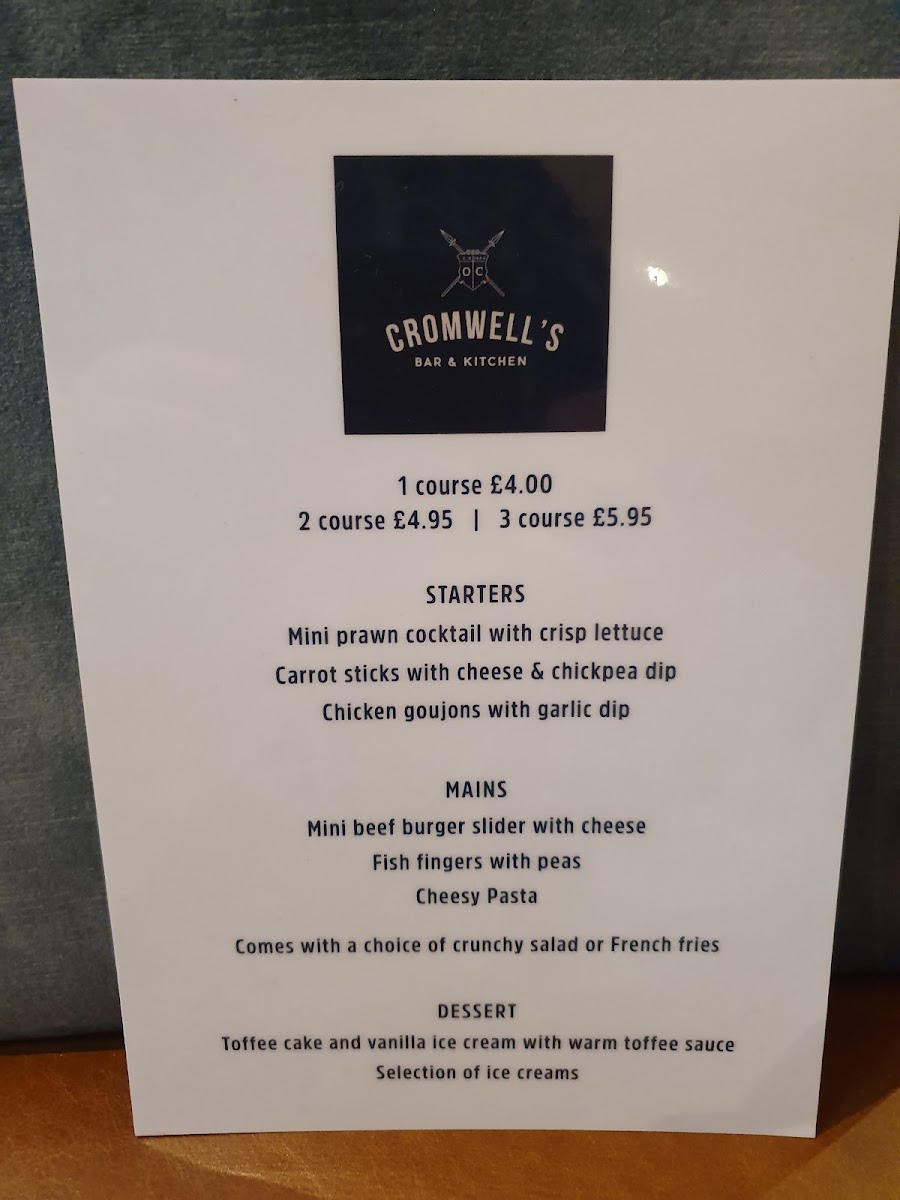 Welcome to Cromwell's Collingham, a charming pub nestled in Wetherby, offering a delightful menu that captures the essence of traditional and contemporary dining. Situated conveniently on Harewood Road, this eatery prides itself on serving hearty mains like Scampi & Chips, Steak & Ale Pie, and comforting vegetarian options such as Vegetable Lasagne. The children’s menu ensures even the youngest diners enjoy favorites like Chicken Goujons and Bangers & Mash.